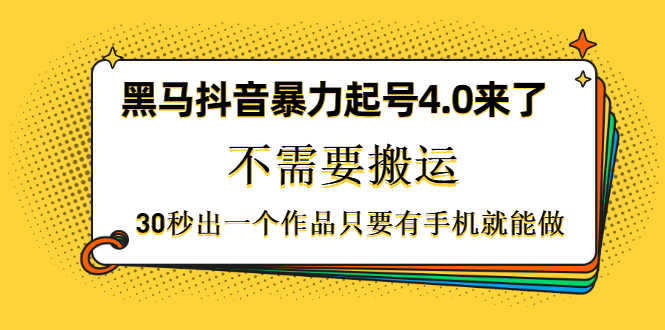 这个课程叫(1226期)黑马抖音暴力起号4.0,它采用的是直接暴力起号配垂直玩法,后期转型带货转化还高。而且啊,它完全不需要搬运,只要有手机,30秒就能出一个作品,简直太适合咱们普通人了!
