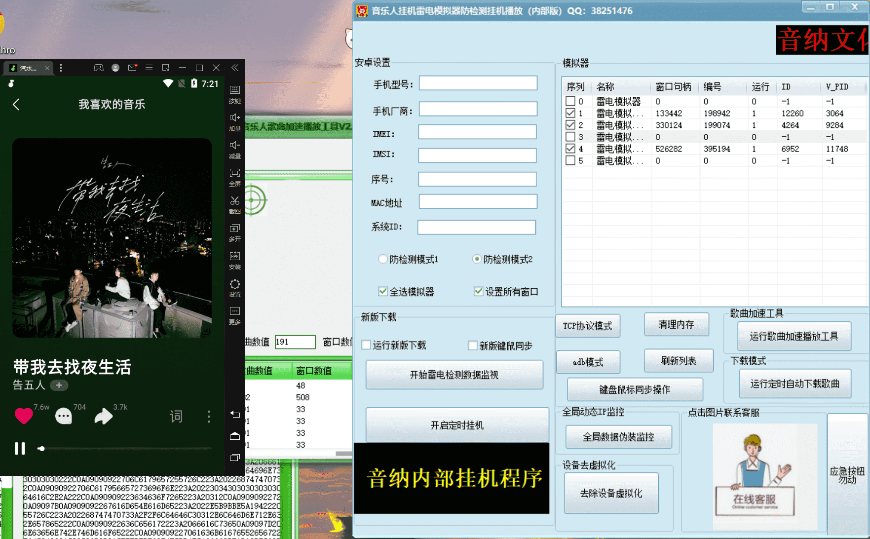(3216期)外面卖3500的音乐人挂机群控防F脚本 支持腾讯/网易云/抖音 号称100%防F