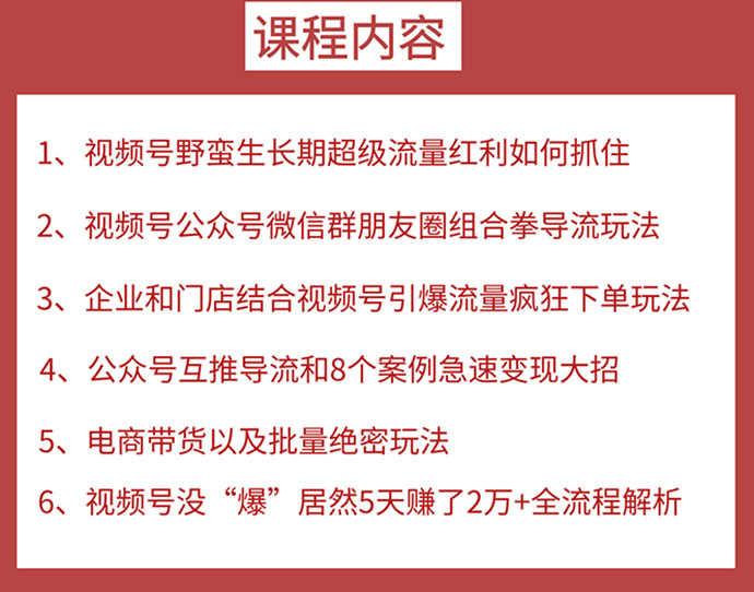 (1532期)视频号训练营第2期:引爆流量疯狂下单,5天赚2万+全流程解析!