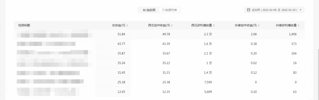 目前,三月份,我们做了一些小小的优化,几天的时间也有几百块的收益。不要小看这点收益,因为这个是一个号的,如果有5-10个甚至更多呢,如果每天发的视频更多点,每天有几十万上百万的播放呢?