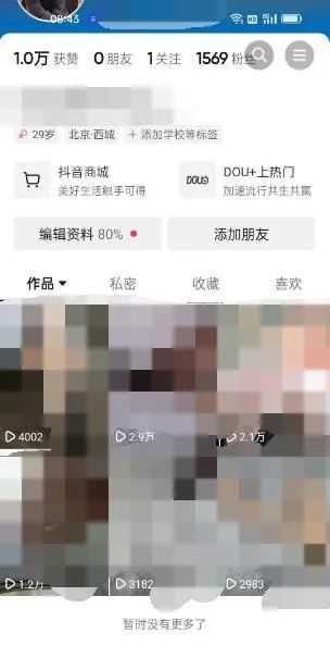我们做的这个男女搭档,完全可以避归以上的问题,不玩套路,不混剪素材,避免系统被抓搬运,不用露脸跳蛇精舞,最后大家看看我们的帐号数据。并且都是新号,完全靠自然流量。