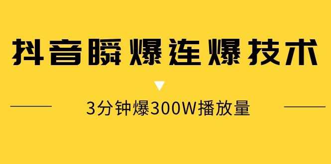 (1125期)某内部群分享:抖音瞬爆连爆技术 3分钟爆300W播放量(视频教程)