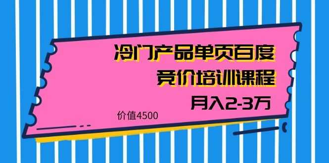 (1129期)我是钱28期冷门产品单页百度竞价培训课程,月入2-3万(价值4500)