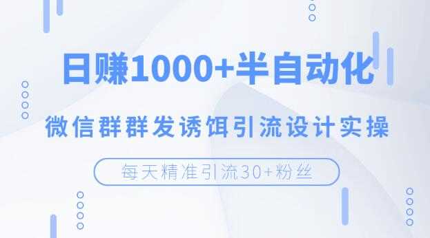 (1195期)每天精准引流30+粉丝,日赚1000+半自动化,微信群群发诱饵引流设计实操