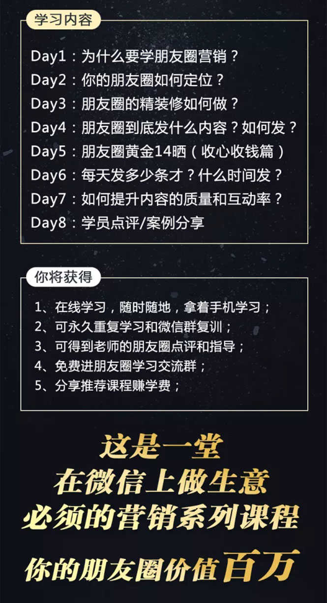 (1510期)【朋友圈营销训练营】0基础教你打造价值百万的个人朋友圈(9节视频课)