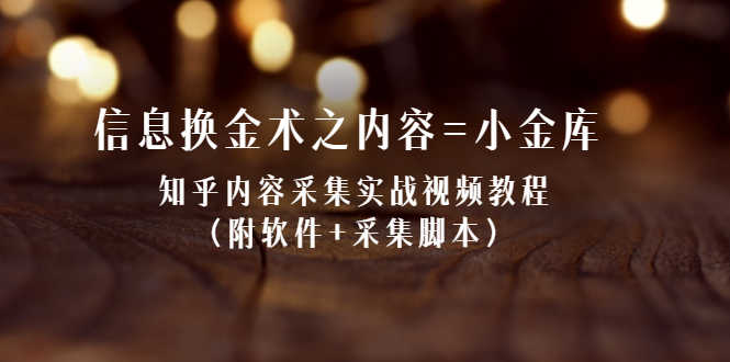 想在互联网站稳脚跟,有口饭吃还能吃一辈子吗?那这套(2117期)“信息换金术之内容=小金库:知乎内容采集实战视频教程(附软件+采集脚本)”你可不能错过。
