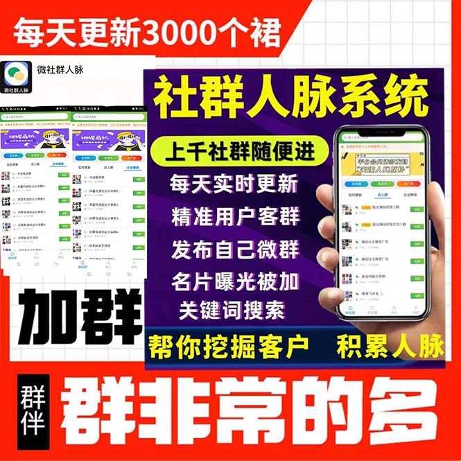 (5203期)拓客引流必备-微信群采集系统,每天实时更新1000+微信群