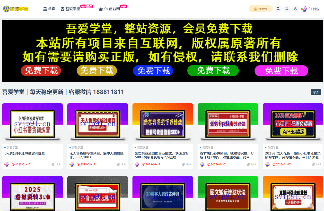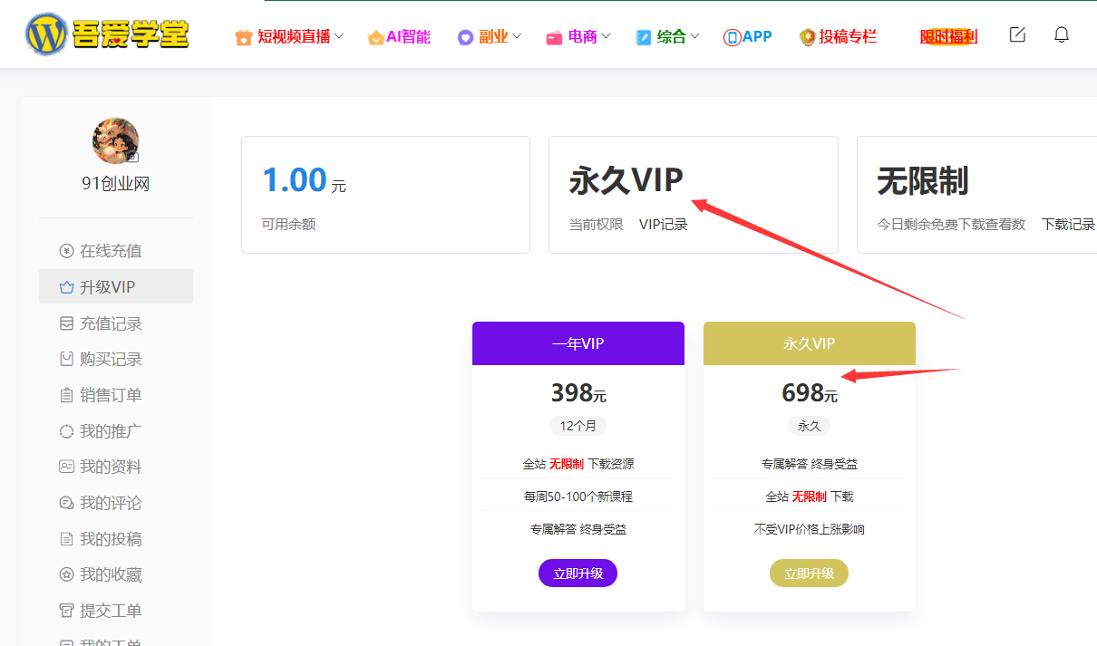 家人们,今天必须给你们分享两个超棒的资源!首先是吾爱课堂的 VIP 永久会员,只需 698 元,差不多 700 块。这可太划算了,有了这个永久会员,你能畅享吾爱课堂里各种优质课程,不管是提升技能、学习知识,都能满足你的需求,一次付费,终身受益。