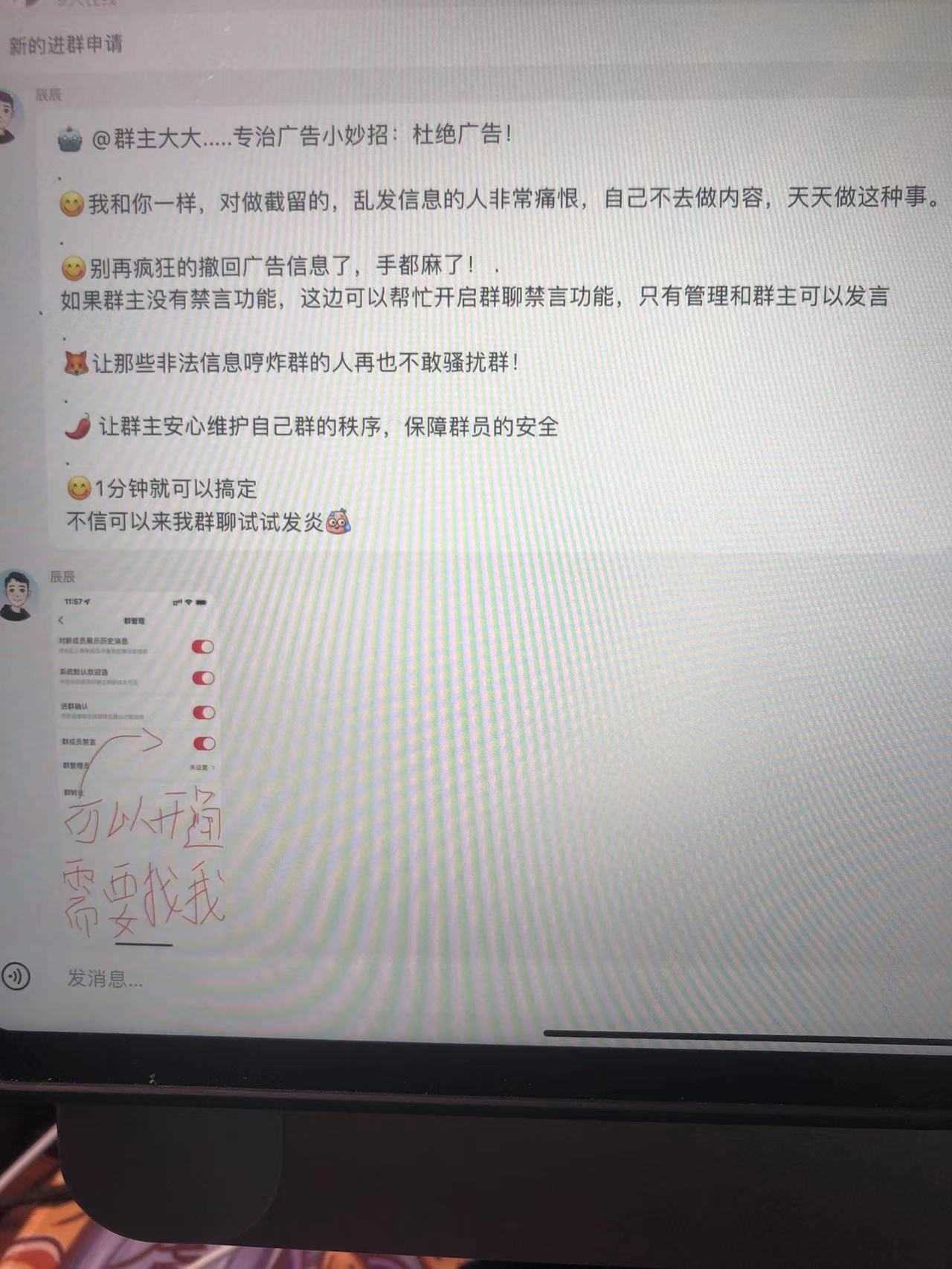家人们,做小红书的是不是都开了群聊?但这群里成天有人发广告,简直烦死人,要是有群禁言功能就好了。别愁,现在有个项目能解决这问题。其实是有办法开通群禁言的,相关技术会在课程里揭秘。
