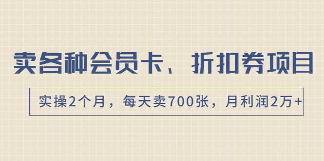 (1769期)卖各种会员卡、折扣券赚钱项目,实操2个月,每天卖700张,月利润2万+