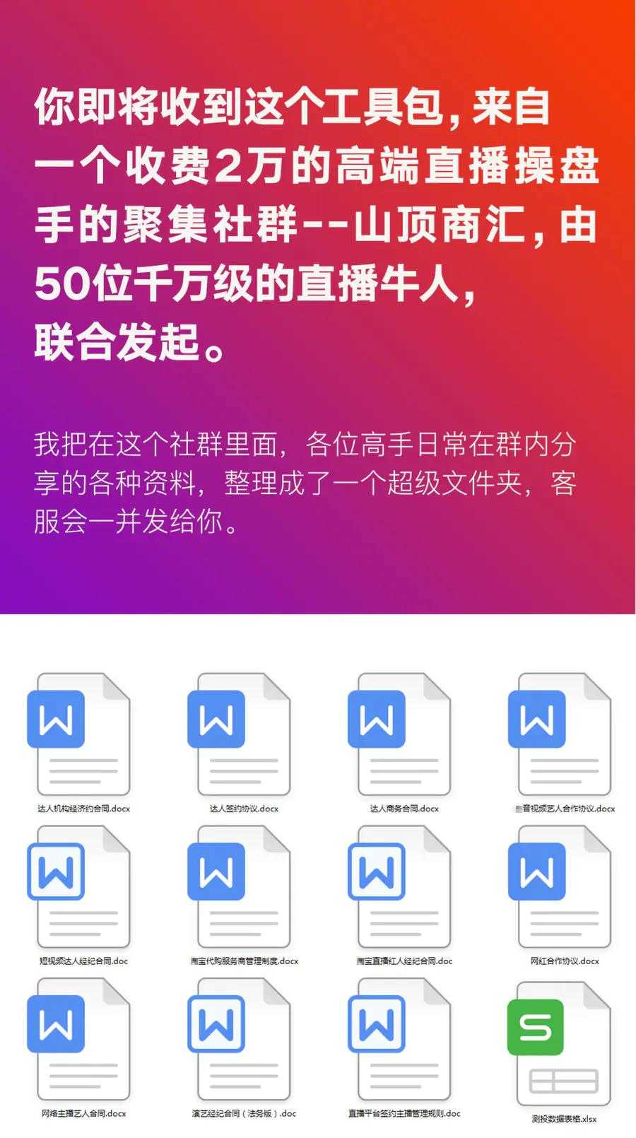 (1511期)直播工具包:56份内部资料+直播操盘手运营笔记2.0【文字版+资料】