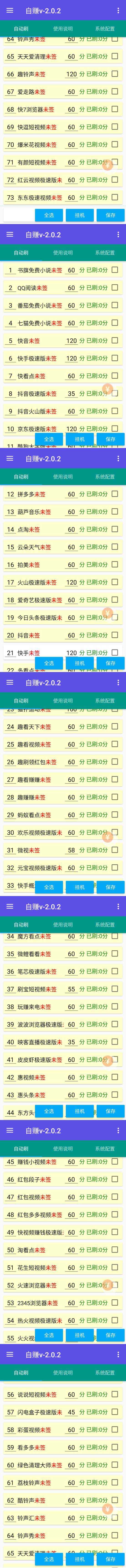 它覆盖了市面上70多个目前收益还不错的平台(都是主流阅读、短视频类),不是那种小作坊平台。我自己试挂了25个平台,一天下来差不多60多块,工作室朋友批量搞了10台,一天小几百没问题——当然,具体看你挂的平台数量和设备情况,但比那些“日赚1元”的靠谱太多。