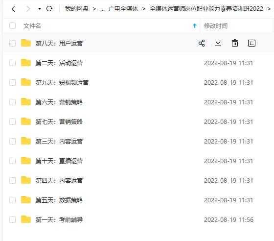 想自己干全媒体运营师,或者准备考全媒体运营师证书的朋友们有福啦!今天给大家带来超实用的资源。这可是(3548期)2022全媒体运营师的全套资料,包含视频课程和配套课件。全媒体运营师起薪高、待遇好,还紧跟时代风口,现在正是入行的好时机。有了这套资料,就像有了专业导师在身边指导,自学考证或者提升实操技能都不在话下。别再到处找零散的资料啦,一套就搞定所有需求。要下载本篇资源,滑到文章结束就能看到下载入口,赶紧行动起来吧!