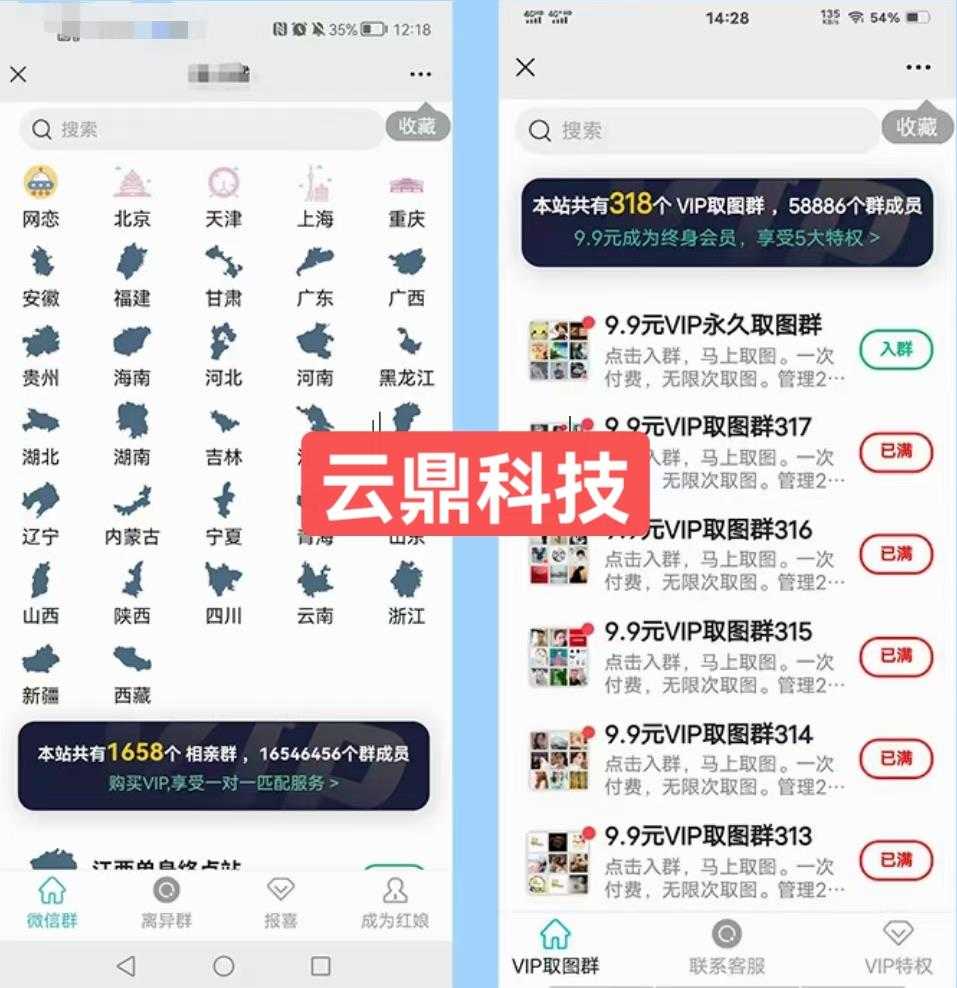 可设置地域群,相亲,男粉变现等多种群