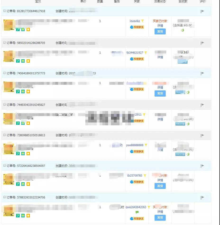 最后附两张淘宝后台订单记录,订单太多,看页码便知。