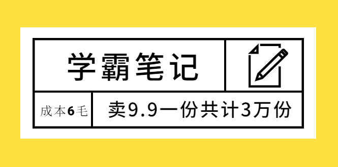 1、学霸笔记,成本6毛,卖9.9一份共计3万份