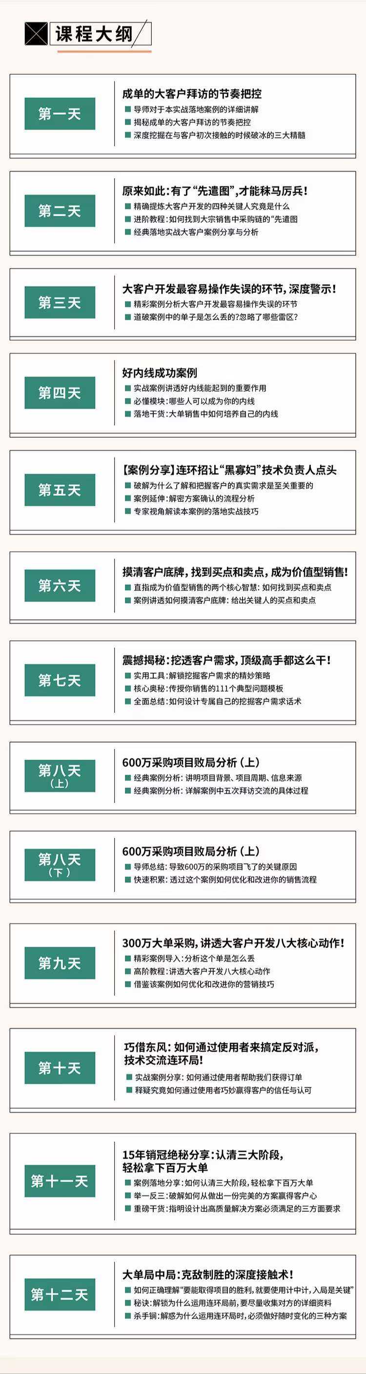 咱这套“12天中标训练营”资源可太实用了!它聚焦大客户销售业绩提升,基于一套完整的理论框架模型。这里面有超多经典的实战案例,详细解读了大单销售的整个过程。