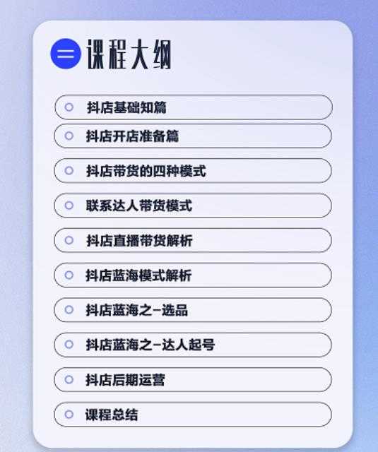这个课程内容超丰富,从抖店基础知识、开店准备,到带货的四种模式、联系达人带货模式,再到直播带货解析、蓝海模式解析等等,每一课都是干货满满。不管你是新手小白,还是有点经验想进一步提升的,都能从这里面找到适合自己的方法。