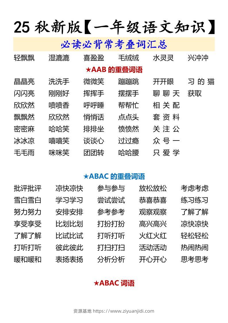 【2025秋新版】【一年级语文知识】必读必背常考叠词汇总-一上语文子渊8个月前发布关注私信0336 ——预览已结束,还剩1页未读——开通会员后可免费下载高清完整文档 【2025秋新版】【一年级语文知识】必读必背常考叠词汇总-一上语文此内容为付费资源,请付费后查看¥19.9¥999普通会员免费超级会员免费立即购买您当前未登录!建议登陆后购买,可保存购买订单格式pdf页数3 页大小150.23 KB付费资源© 版权声明文章版权归作者所有,未经允许请勿转载。THE END小学语文 喜欢就支持一下吧点赞6 分享QQ空间微博QQ好友海报分享复制链接收藏