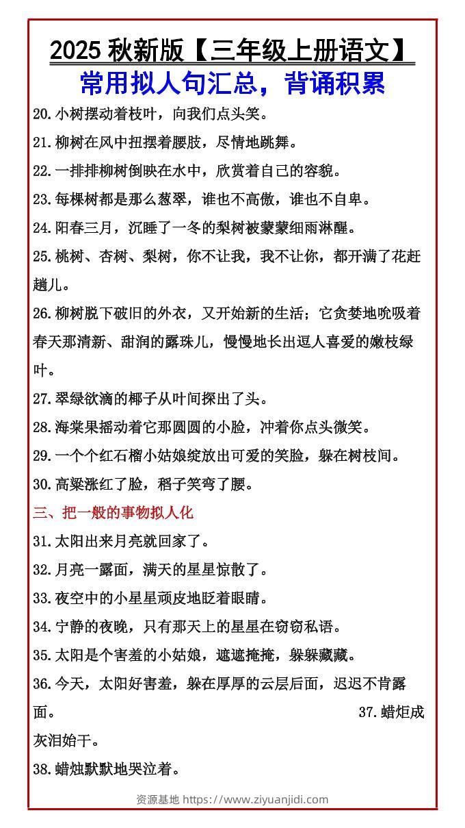 【2025秋新版】【三年级上册语文】常用拟人句汇总,背诵积累子渊8个月前发布关注私信04715 ——预览已结束,还剩1页未读——开通会员后可免费下载高清完整文档 【2025秋新版】【三年级上册语文】常用拟人句汇总,背诵积累此内容为付费资源,请付费后查看¥19.9¥999普通会员免费超级会员免费立即购买您当前未登录!建议登陆后购买,可保存购买订单格式pdf页数3 页大小111.93 KB付费资源© 版权声明文章版权归作者所有,未经允许请勿转载。THE END小学语文 喜欢就支持一下吧点赞15 分享QQ空间微博QQ好友海报分享复制链接收藏