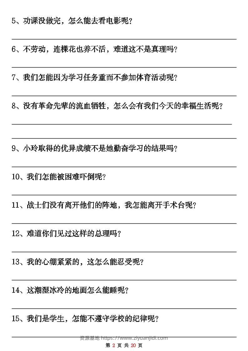 二上语文反问句陈述句转换专项练习100题(含答案20页)好牛5小时前发布关注私信0476 ——预览已结束,还剩14页未读——开通会员后可免费下载高清完整文档 二上语文反问句陈述句转换专项练习100题(含答案20页)此内容为付费资源,请付费后查看¥19.9¥999普通会员免费超级会员免费立即购买您当前未登录!建议登陆后购买,可保存购买订单格式pdf页数16 页大小418.63 KB付费资源© 版权声明文章版权归作者所有,未经允许请勿转载。THE END小学语文 喜欢就支持一下吧点赞6 分享QQ空间微博QQ好友海报分享复制链接收藏