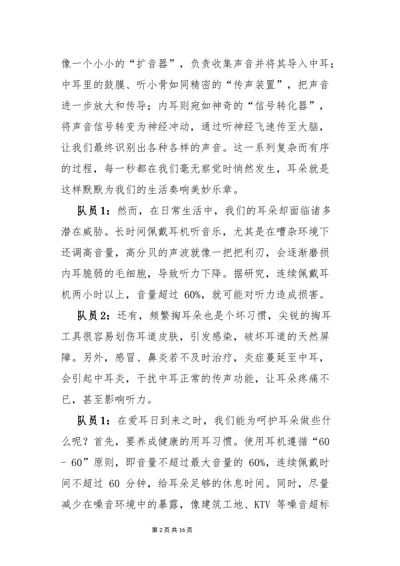 红领巾广播站2025年春季学期第3周播稿(1)子渊1年前发布关注私信03213 ——预览已结束,还剩14页未读——开通会员后可免费下载高清完整文档 红领巾广播站2025年春季学期第3周播稿(1)此内容为付费资源,请付费后查看¥18.8¥999普通会员免费超级会员免费立即购买您当前未登录!建议登陆后购买,可保存购买订单格式docx页数16 页大小277.45 KB付费资源© 版权声明文章版权归作者所有,未经允许请勿转载。THE END发言稿 喜欢就支持一下吧点赞13 分享QQ空间微博QQ好友海报分享复制链接收藏