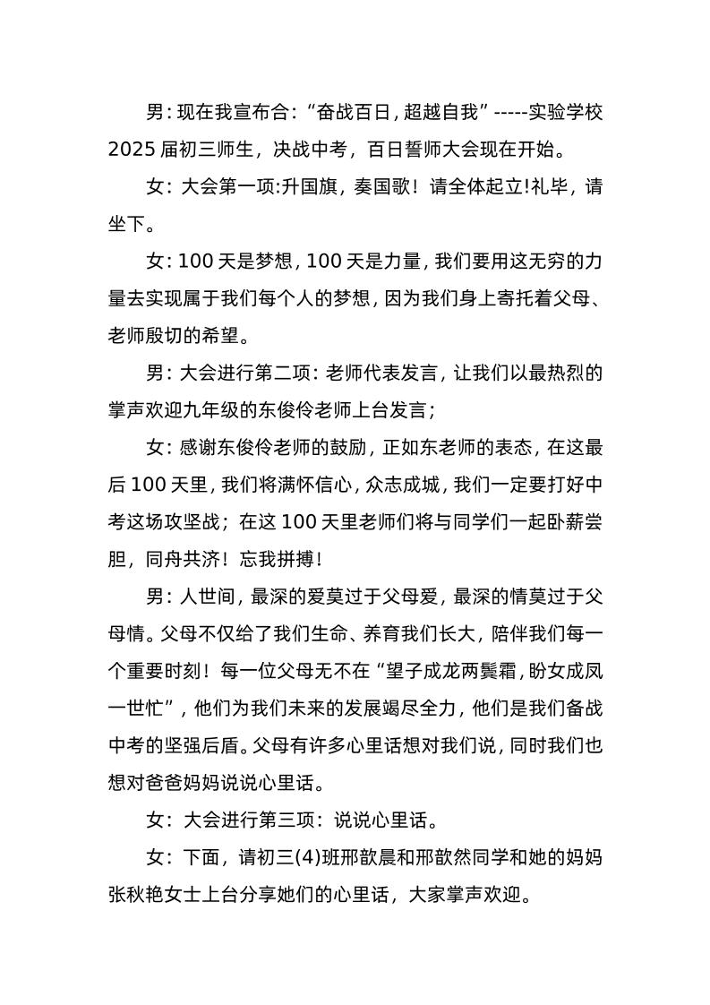 2025年中考百日誓师活动主持词子渊12个月前发布关注私信03115 ——预览已结束,还剩3页未读——开通会员后可免费下载高清完整文档 2025年中考百日誓师活动主持词此内容为付费资源,请付费后查看¥18.8¥999普通会员免费超级会员免费立即购买您当前未登录!建议登陆后购买,可保存购买订单格式doc页数5 页大小29.79 KB付费资源© 版权声明文章版权归作者所有,未经允许请勿转载。THE END发言稿 喜欢就支持一下吧点赞15 分享QQ空间微博QQ好友海报分享复制链接收藏