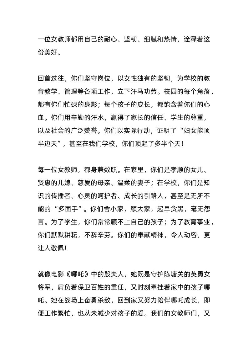 2025年三八妇女节,中小学校长精彩讲话:从哪吒妈妈殷夫人到校园女神,她们都在守护什么子渊12个月前发布关注私信04110 ——预览已结束,还剩2页未读——开通会员后可免费下载高清完整文档 2025年三八妇女节,中小学校长精彩讲话:从哪吒妈妈殷夫人到校园女神,她们都在守护什么此内容为付费资源,请付费后查看¥19.9¥999普通会员免费超级会员免费立即购买您当前未登录!建议登陆后购买,可保存购买订单格式docx页数4 页大小13.40 KB付费资源© 版权声明文章版权归作者所有,未经允许请勿转载。THE END发言稿 喜欢就支持一下吧点赞10 分享QQ空间微博QQ好友海报分享复制链接收藏