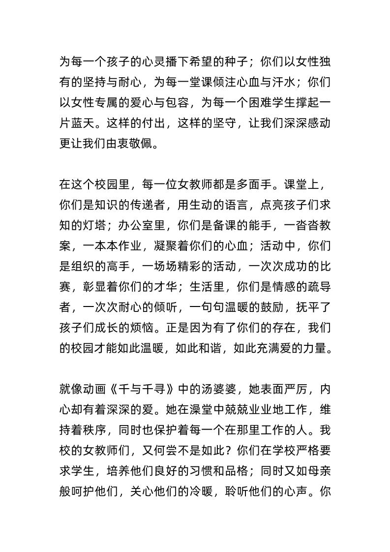 2025年三八妇女节,校长精彩讲话:二十岁的朝气蓬勃,三十岁的从容不迫,四十岁的稳重大方,五十岁的智慧通达……子渊12个月前发布关注私信02411 ——预览已结束,还剩4页未读——开通会员后可免费下载高清完整文档 2025年三八妇女节,校长精彩讲话:二十岁的朝气蓬勃,三十岁的从容不迫,四十岁的稳重大方,五十岁的智慧通达……此内容为付费资源,请付费后查看¥18.8¥999普通会员免费超级会员免费立即购买您当前未登录!建议登陆后购买,可保存购买订单格式docx页数6 页大小14.01 KB付费资源© 版权声明文章版权归作者所有,未经允许请勿转载。THE END发言稿 喜欢就支持一下吧点赞11 分享QQ空间微博QQ好友海报分享复制链接收藏