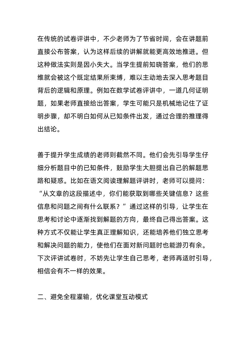 教学副校长在教师例会上发言:试卷讲评要讲究“3避2优”原则好牛8个月前发布关注私信05010 ——预览已结束,还剩3页未读——开通会员后可免费下载高清完整文档 教学副校长在教师例会上发言:试卷讲评要讲究“3避2优”原则此内容为付费资源,请付费后查看¥18.8¥999普通会员免费超级会员免费立即购买您当前未登录!建议登陆后购买,可保存购买订单格式docx页数5 页大小14.19 KB付费资源© 版权声明文章版权归作者所有,未经允许请勿转载。THE END发言稿 喜欢就支持一下吧点赞10 分享QQ空间微博QQ好友海报分享复制链接收藏