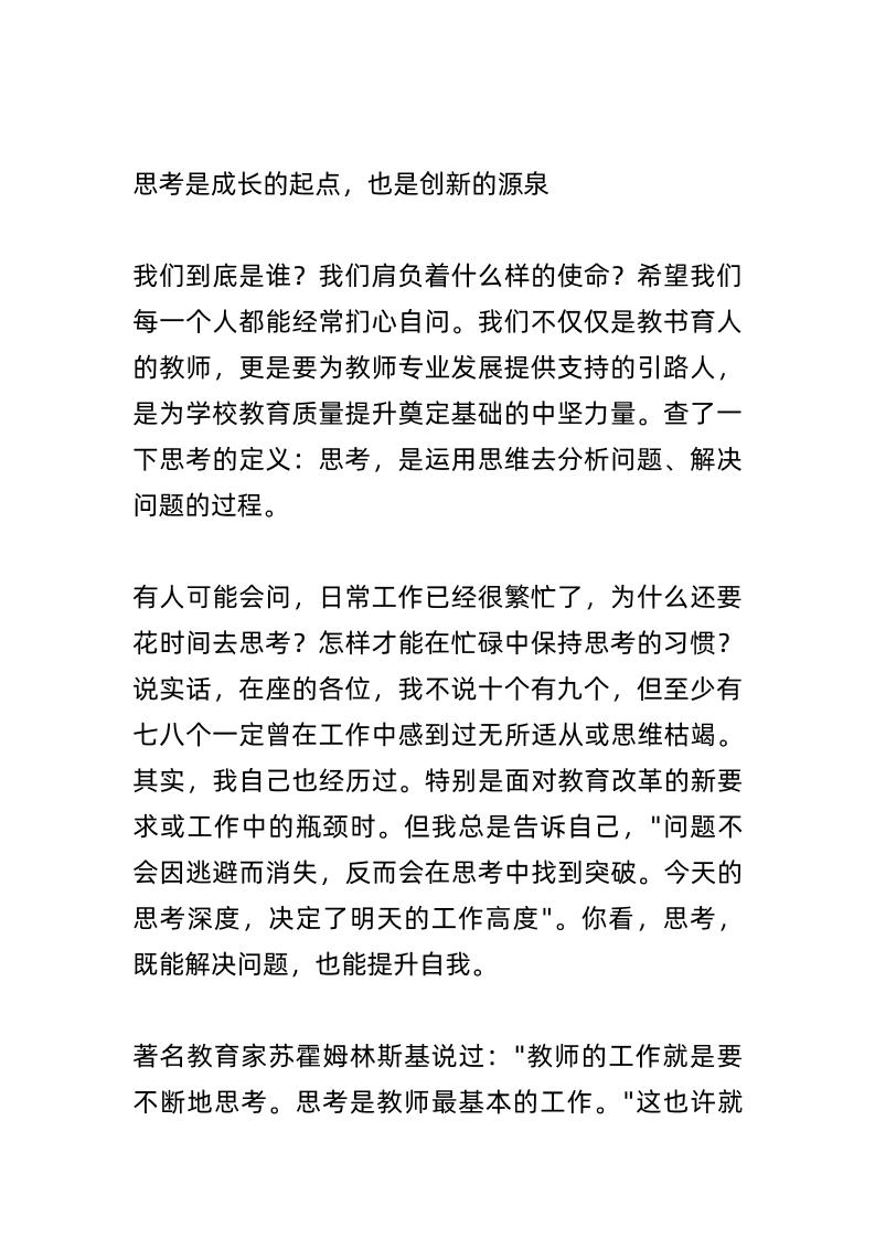 教研组长会议上,校长讲话:停止假教研!思考才是突围关键!子渊12个月前发布关注私信0459 ——预览已结束,还剩5页未读——开通会员后可免费下载高清完整文档 教研组长会议上,校长讲话:停止假教研!思考才是突围关键!此内容为付费资源,请付费后查看¥18.8¥999普通会员免费超级会员免费立即购买您当前未登录!建议登陆后购买,可保存购买订单格式docx页数7 页大小14.82 KB付费资源© 版权声明文章版权归作者所有,未经允许请勿转载。THE END发言稿 喜欢就支持一下吧点赞9 分享QQ空间微博QQ好友海报分享复制链接收藏