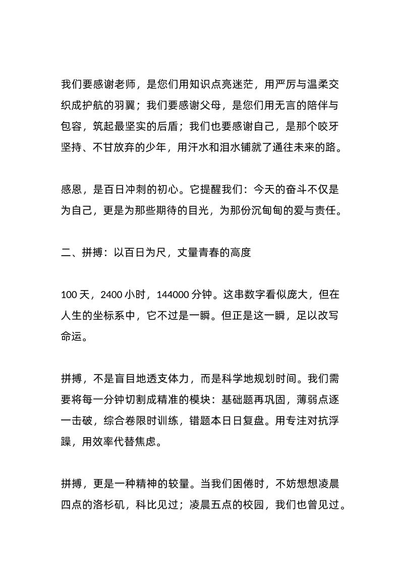 2025年高考百日誓师大会学生表态发言稿:百日冲刺,青春无悔子渊12个月前发布关注私信03711 ——预览已结束,还剩2页未读——开通会员后可免费下载高清完整文档 2025年高考百日誓师大会学生表态发言稿:百日冲刺,青春无悔此内容为付费资源,请付费后查看¥18.8¥999普通会员免费超级会员免费立即购买您当前未登录!建议登陆后购买,可保存购买订单格式docx页数4 页大小13.56 KB付费资源© 版权声明文章版权归作者所有,未经允许请勿转载。THE END发言稿 喜欢就支持一下吧点赞11 分享QQ空间微博QQ好友海报分享复制链接收藏