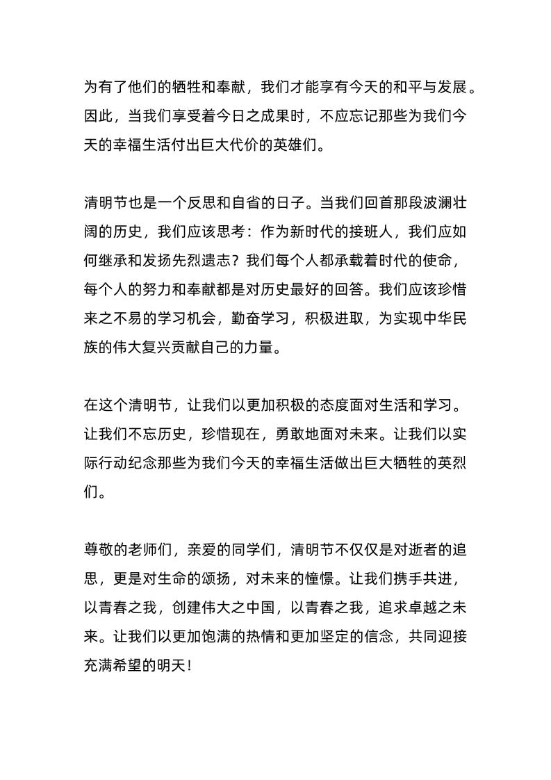 2025年清明节国旗下讲话——忆清明缅英烈思奋进子渊11个月前发布关注私信02511 ——预览已结束,还剩1页未读——开通会员后可免费下载高清完整文档 2025年清明节国旗下讲话——忆清明缅英烈思奋进此内容为付费资源,请付费后查看¥19.9¥999普通会员免费超级会员免费立即购买您当前未登录!建议登陆后购买,可保存购买订单格式docx页数3 页大小12.19 KB付费资源© 版权声明文章版权归作者所有,未经允许请勿转载。THE END发言稿 喜欢就支持一下吧点赞11 分享QQ空间微博QQ好友海报分享复制链接收藏