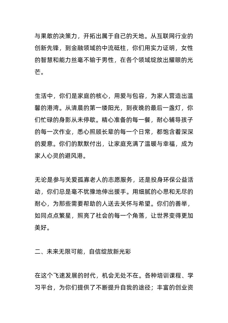 春风如你,熠熠芳华——2025年“三八”国际妇女节致辞子渊11个月前发布关注私信02214 ——预览已结束,还剩3页未读——开通会员后可免费下载高清完整文档 春风如你,熠熠芳华——2025年“三八”国际妇女节致辞此内容为付费资源,请付费后查看¥18.8¥999普通会员免费超级会员免费立即购买您当前未登录!建议登陆后购买,可保存购买订单格式docx页数5 页大小13.88 KB付费资源© 版权声明文章版权归作者所有,未经允许请勿转载。THE END发言稿 喜欢就支持一下吧点赞14 分享QQ空间微博QQ好友海报分享复制链接收藏