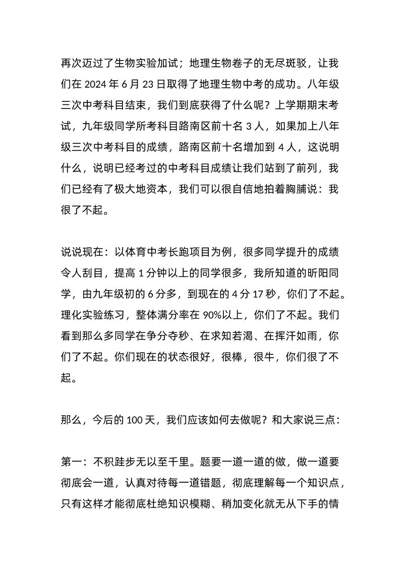 副校长在中考百日誓师大会上的讲话:青春百日同风起,扶摇直上九万里子渊11个月前发布关注私信02115 ——预览已结束,还剩2页未读——开通会员后可免费下载高清完整文档 副校长在中考百日誓师大会上的讲话:青春百日同风起,扶摇直上九万里此内容为付费资源,请付费后查看¥18.8¥999普通会员免费超级会员免费立即购买您当前未登录!建议登陆后购买,可保存购买订单格式docx页数4 页大小13.33 KB付费资源© 版权声明文章版权归作者所有,未经允许请勿转载。THE END国旗下讲话 喜欢就支持一下吧点赞15 分享QQ空间微博QQ好友海报分享复制链接收藏