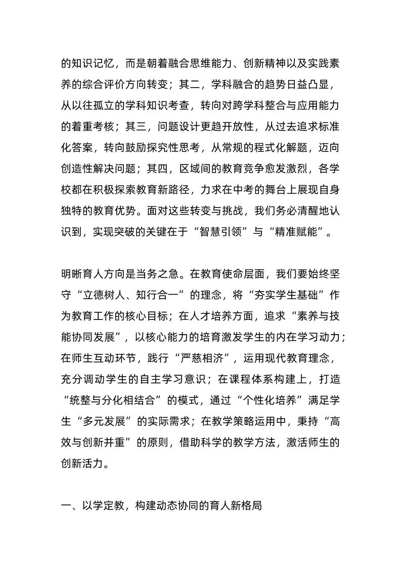 校长在九年级毕业班工作研讨会上讲话:中考突围,“教”“学”“思”破局之道子渊11个月前发布关注私信0355 ——预览已结束,还剩6页未读——开通会员后可免费下载高清完整文档 校长在九年级毕业班工作研讨会上讲话:中考突围,“教”“学”“思”破局之道此内容为付费资源,请付费后查看¥18.8¥999普通会员免费超级会员免费立即购买您当前未登录!建议登陆后购买,可保存购买订单格式docx页数8 页大小16.45 KB付费资源© 版权声明文章版权归作者所有,未经允许请勿转载。THE END发言稿 喜欢就支持一下吧点赞5 分享QQ空间微博QQ好友海报分享复制链接收藏