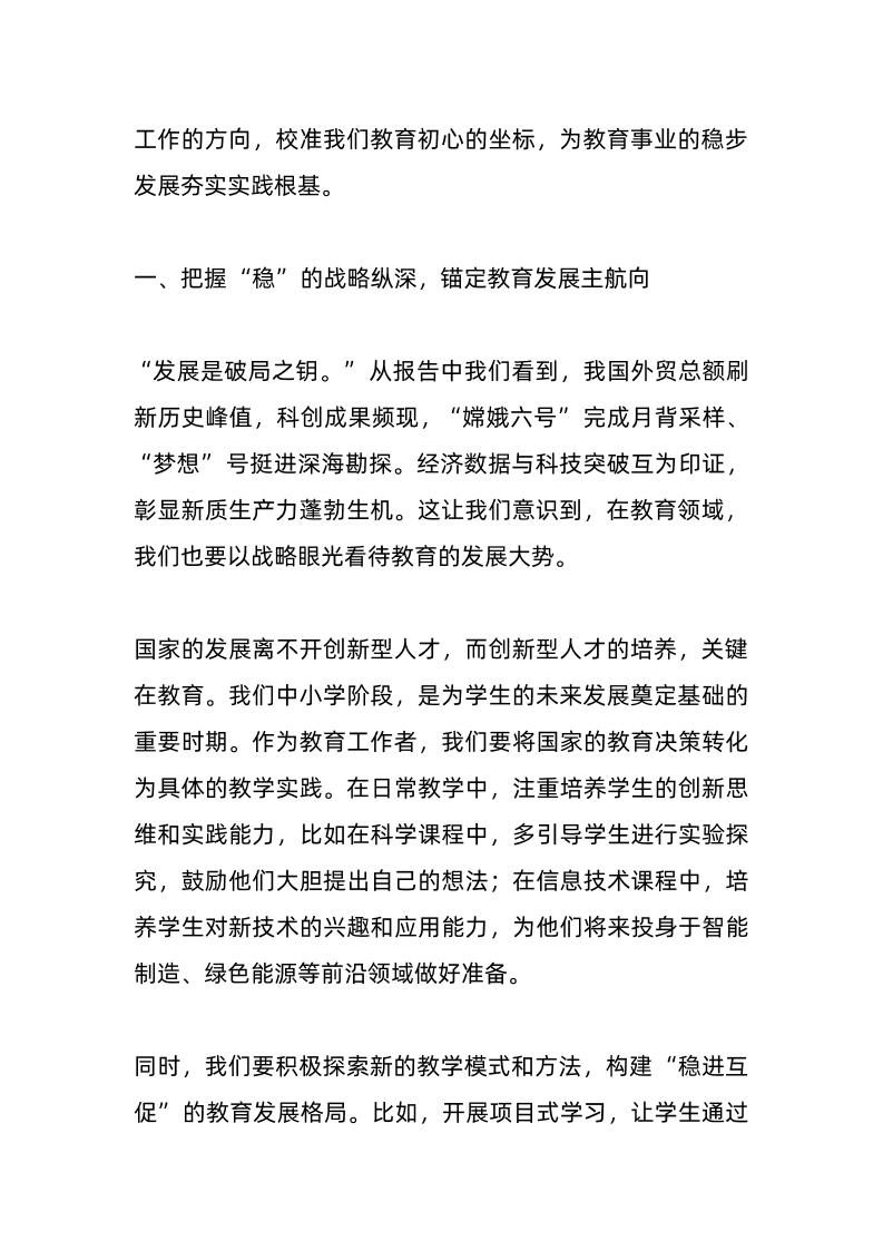 中小学校长在全体教师大会上发言:聚焦两会报告,教育“稳”步前行子渊11个月前发布关注私信0249 ——预览已结束,还剩3页未读——开通会员后可免费下载高清完整文档 中小学校长在全体教师大会上发言:聚焦两会报告,教育“稳”步前行此内容为付费资源,请付费后查看¥19.9¥999普通会员免费超级会员免费立即购买您当前未登录!建议登陆后购买,可保存购买订单格式docx页数5 页大小14.30 KB付费资源© 版权声明文章版权归作者所有,未经允许请勿转载。THE END发言稿 喜欢就支持一下吧点赞9 分享QQ空间微博QQ好友海报分享复制链接收藏