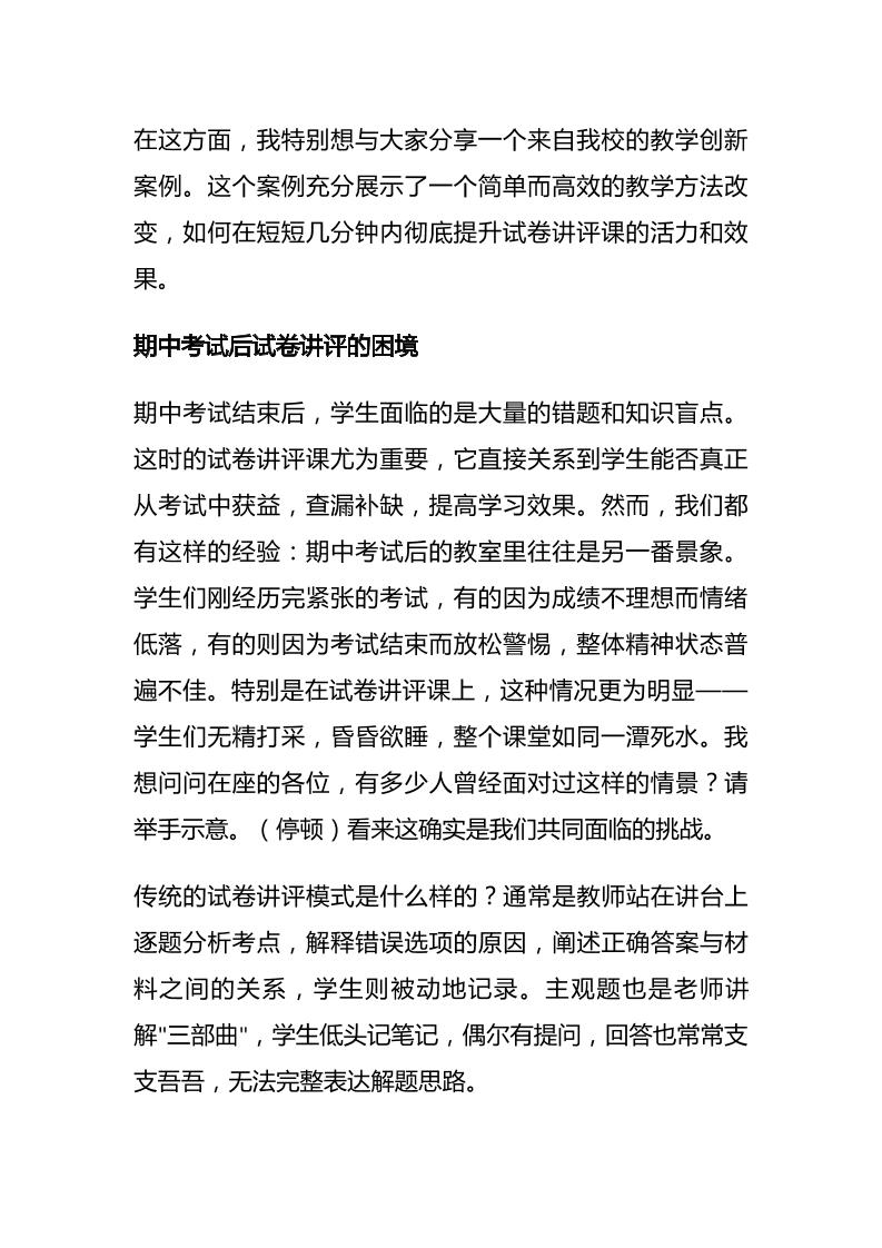 全体教师会议校长讲话:期中考试后,花3分钟改变试卷讲评方式,效果惊呆全班!子渊10个月前发布关注私信03515 ——预览已结束,还剩6页未读——开通会员后可免费下载高清完整文档 全体教师会议校长讲话:期中考试后,花3分钟改变试卷讲评方式,效果惊呆全班!此内容为付费资源,请付费后查看¥18.8¥999普通会员免费超级会员免费立即购买您当前未登录!建议登陆后购买,可保存购买订单格式docx页数8 页大小16.15 KB付费资源© 版权声明文章版权归作者所有,未经允许请勿转载。THE END发言稿 喜欢就支持一下吧点赞15 分享QQ空间微博QQ好友海报分享复制链接收藏