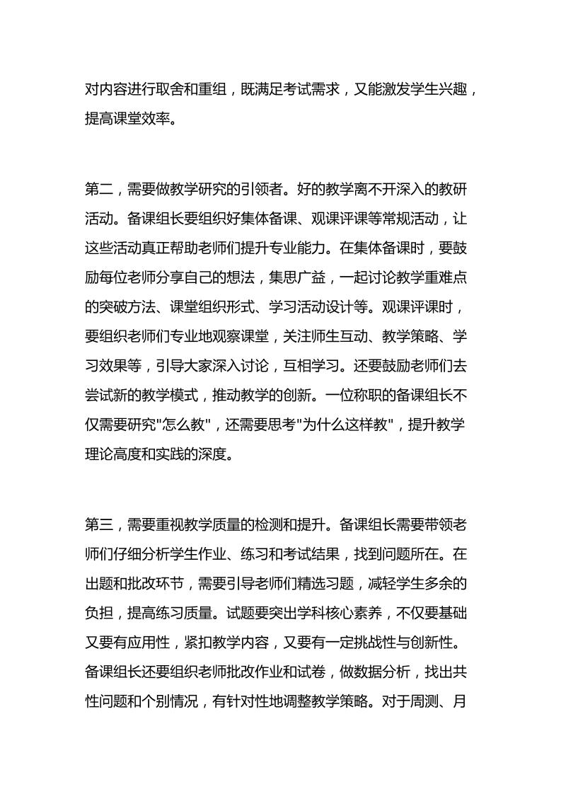 全校备课组长会议上,校长讲话:一人顶十人!一个变态强的备课组长能让整个年级教学质量翻倍提升!子渊10个月前发布关注私信0307 ——预览已结束,还剩3页未读——开通会员后可免费下载高清完整文档 全校备课组长会议上,校长讲话:一人顶十人!一个变态强的备课组长能让整个年级教学质量翻倍提升!此内容为付费资源,请付费后查看¥19.9¥999普通会员免费超级会员免费立即购买您当前未登录!建议登陆后购买,可保存购买订单格式docx页数5 页大小14.25 KB付费资源© 版权声明文章版权归作者所有,未经允许请勿转载。THE END发言稿 喜欢就支持一下吧点赞7 分享QQ空间微博QQ好友海报分享复制链接收藏