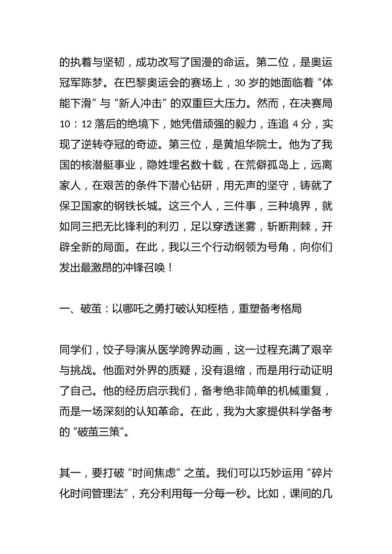 校长在百日誓师冲刺大会上讲话:100天,像哪吒破茧、陈梦突围、黄旭华砺剑那样赢高考子渊10个月前发布关注私信0305 ——预览已结束,还剩4页未读——开通会员后可免费下载高清完整文档 校长在百日誓师冲刺大会上讲话:100天,像哪吒破茧、陈梦突围、黄旭华砺剑那样赢高考此内容为付费资源,请付费后查看¥18.8¥999普通会员免费超级会员免费立即购买您当前未登录!建议登陆后购买,可保存购买订单格式docx页数6 页大小15.21 KB付费资源© 版权声明文章版权归作者所有,未经允许请勿转载。THE END发言稿 喜欢就支持一下吧点赞5 分享QQ空间微博QQ好友海报分享复制链接收藏