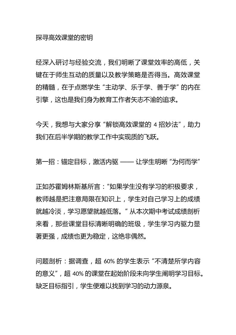 校长在期中教学质量分析会上讲话:4招打造高效课堂,校长揭秘提升学习力的密码子渊10个月前发布关注私信0447 ——预览已结束,还剩6页未读——开通会员后可免费下载高清完整文档 校长在期中教学质量分析会上讲话:4招打造高效课堂,校长揭秘提升学习力的密码此内容为付费资源,请付费后查看¥18.8¥999普通会员免费超级会员免费立即购买您当前未登录!建议登陆后购买,可保存购买订单格式docx页数8 页大小15.79 KB付费资源© 版权声明文章版权归作者所有,未经允许请勿转载。THE END发言稿 喜欢就支持一下吧点赞7 分享QQ空间微博QQ好友海报分享复制链接收藏