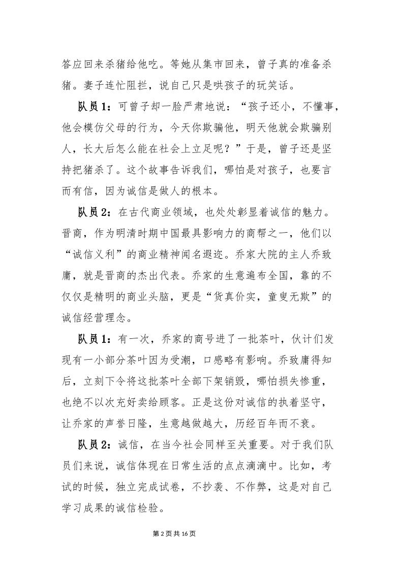 红领巾广播站2025年春季学期第9周播稿子渊8个月前发布关注私信02314 ——预览已结束,还剩14页未读——开通会员后可免费下载高清完整文档 红领巾广播站2025年春季学期第9周播稿此内容为付费资源,请付费后查看¥18.8¥999普通会员免费超级会员免费立即购买您当前未登录!建议登陆后购买,可保存购买订单格式docx页数16 页大小281.02 KB付费资源© 版权声明文章版权归作者所有,未经允许请勿转载。THE END管理相关 喜欢就支持一下吧点赞14 分享QQ空间微博QQ好友海报分享复制链接收藏