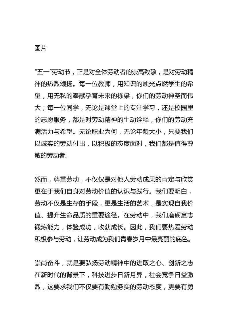 校长在国旗下讲话:尊重劳动,崇尚奋斗,共筑美好未来子渊10个月前发布关注私信0436 ——预览已结束,还剩1页未读——开通会员后可免费下载高清完整文档 校长在国旗下讲话:尊重劳动,崇尚奋斗,共筑美好未来此内容为付费资源,请付费后查看¥18.8¥999普通会员免费超级会员免费立即购买您当前未登录!建议登陆后购买,可保存购买订单格式docx页数3 页大小12.76 KB付费资源© 版权声明文章版权归作者所有,未经允许请勿转载。THE END发言稿 喜欢就支持一下吧点赞6 分享QQ空间微博QQ好友海报分享复制链接收藏