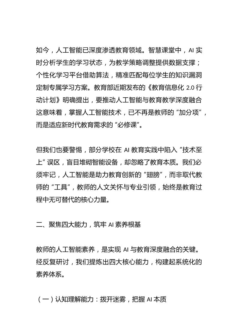 校长在人工智能教师培训专题研讨会上讲话:主动拥抱人工智能,才能为学生开辟更广阔的成长空间子渊10个月前发布关注私信03615 ——预览已结束,还剩4页未读——开通会员后可免费下载高清完整文档 校长在人工智能教师培训专题研讨会上讲话:主动拥抱人工智能,才能为学生开辟更广阔的成长空间此内容为付费资源,请付费后查看¥19.9¥999普通会员免费超级会员免费立即购买您当前未登录!建议登陆后购买,可保存购买订单格式docx页数6 页大小14.42 KB付费资源© 版权声明文章版权归作者所有,未经允许请勿转载。THE END发言稿 喜欢就支持一下吧点赞15 分享QQ空间微博QQ好友海报分享复制链接收藏