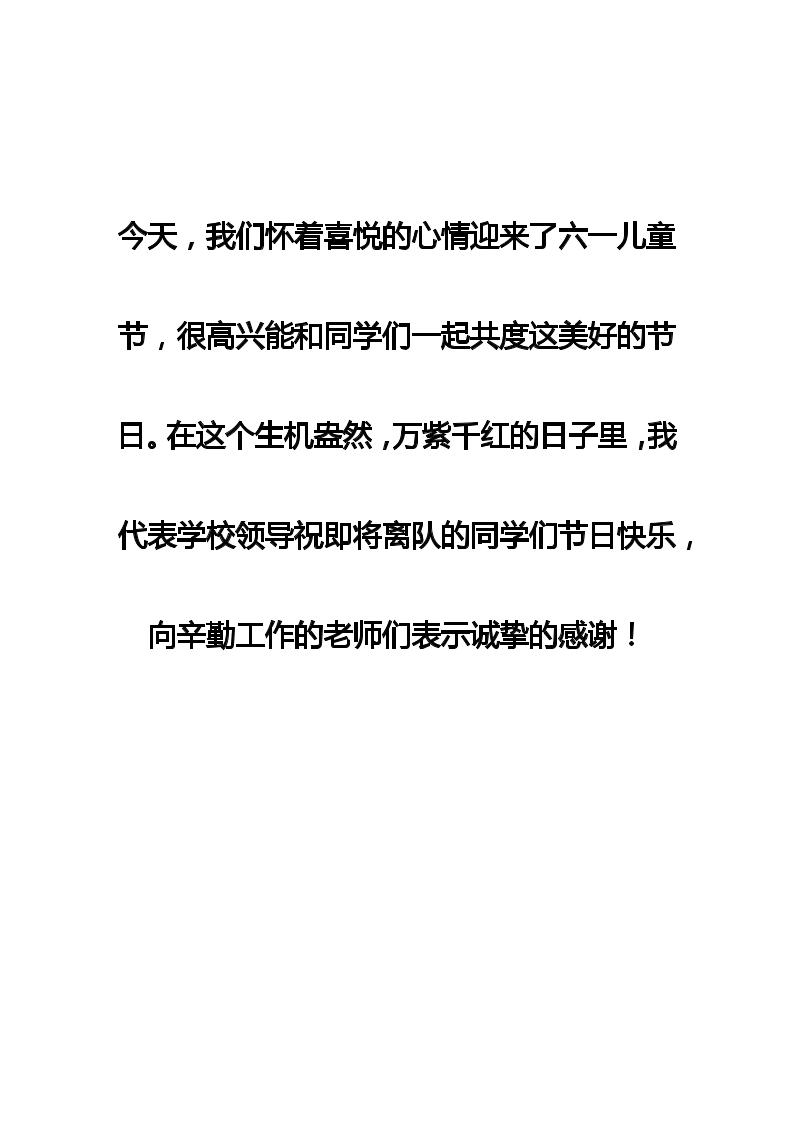 庆六一儿童节,校长在国旗下讲话儿童时代是美好人生的开端,远大的理想在这里孕育,高尚的情操在这里萌生,良好的习惯在这里养成子渊10个月前发布关注私信04611 ——预览已结束,还剩9页未读——开通会员后可免费下载高清完整文档 庆六一儿童节,校长在国旗下讲话儿童时代是美好人生的开端,远大的理想在这里孕育,高尚的情操在这里萌生,良好的习惯在这里养成此内容为付费资源,请付费后查看¥19.9¥999普通会员免费超级会员免费立即购买您当前未登录!建议登陆后购买,可保存购买订单格式doc页数11 页大小13.00 KB付费资源© 版权声明文章版权归作者所有,未经允许请勿转载。THE END发言稿 喜欢就支持一下吧点赞11 分享QQ空间微博QQ好友海报分享复制链接收藏