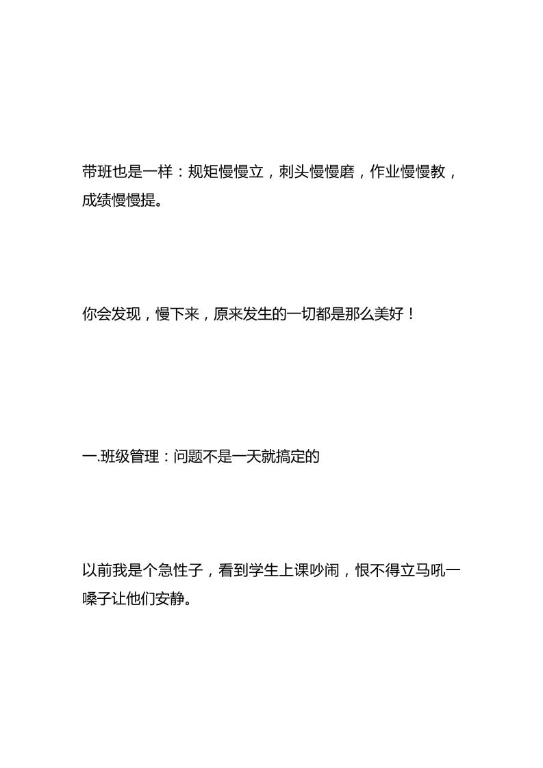 慢教育的智慧,班主任必看:从“急性子”到“慢性子”———我的班级管理之路子渊7个月前发布关注私信0439 ——预览已结束,还剩4页未读——开通会员后可免费下载高清完整文档 慢教育的智慧,班主任必看:从“急性子”到“慢性子”———我的班级管理之路此内容为付费资源,请付费后查看¥19.9¥999普通会员免费超级会员免费立即购买您当前未登录!建议登陆后购买,可保存购买订单格式docx页数6 页大小13.35 KB付费资源© 版权声明文章版权归作者所有,未经允许请勿转载。THE END管理相关 喜欢就支持一下吧点赞9 分享QQ空间微博QQ好友海报分享复制链接收藏