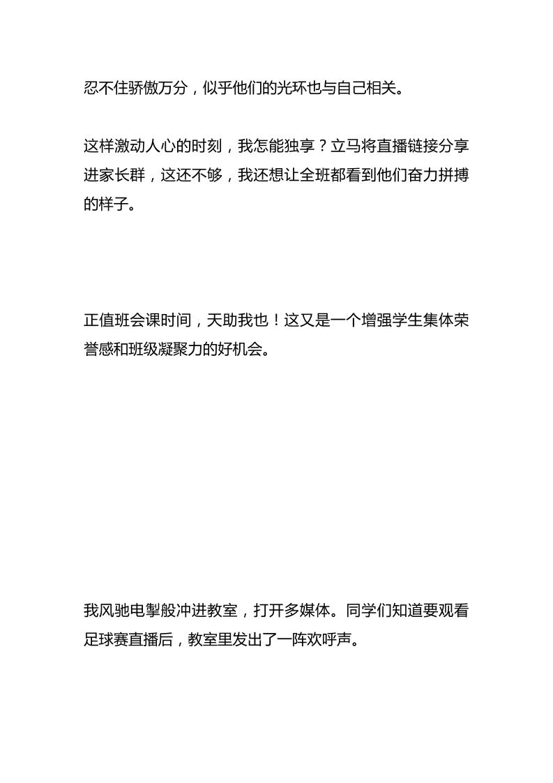 我的班级管理之路:在校园足球三级联赛总决赛中冒雨拼搏,向冠军发起冲锋,我和全班为他们加油!子渊7个月前发布关注私信02912 ——预览已结束,还剩4页未读——开通会员后可免费下载高清完整文档 我的班级管理之路:在校园足球三级联赛总决赛中冒雨拼搏,向冠军发起冲锋,我和全班为他们加油!此内容为付费资源,请付费后查看¥19.9¥999普通会员免费超级会员免费立即购买您当前未登录!建议登陆后购买,可保存购买订单格式docx页数6 页大小13.25 KB付费资源© 版权声明文章版权归作者所有,未经允许请勿转载。THE END管理相关 喜欢就支持一下吧点赞12 分享QQ空间微博QQ好友海报分享复制链接收藏