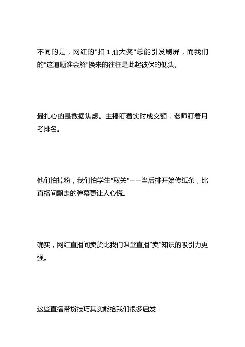 从“传统课堂”到“直播间卖货”:打造高效课堂——我的教学之路子渊7个月前发布关注私信0416 ——预览已结束,还剩5页未读——开通会员后可免费下载高清完整文档 从“传统课堂”到“直播间卖货”:打造高效课堂——我的教学之路此内容为付费资源,请付费后查看¥19.9¥999普通会员免费超级会员免费立即购买您当前未登录!建议登陆后购买,可保存购买订单格式docx页数7 页大小13.89 KB付费资源© 版权声明文章版权归作者所有,未经允许请勿转载。THE END管理相关 喜欢就支持一下吧点赞6 分享QQ空间微博QQ好友海报分享复制链接收藏