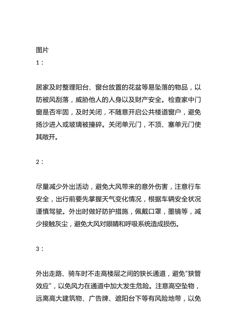 大风预警安全防范——关于大风天气致学生及家长一封信子渊7个月前发布关注私信03111 ——预览已结束,还剩1页未读——开通会员后可免费下载高清完整文档 大风预警安全防范——关于大风天气致学生及家长一封信此内容为付费资源,请付费后查看¥18.8¥999普通会员免费超级会员免费立即购买您当前未登录!建议登陆后购买,可保存购买订单格式docx页数3 页大小12.04 KB付费资源© 版权声明文章版权归作者所有,未经允许请勿转载。THE END管理相关 喜欢就支持一下吧点赞11 分享QQ空间微博QQ好友海报分享复制链接收藏