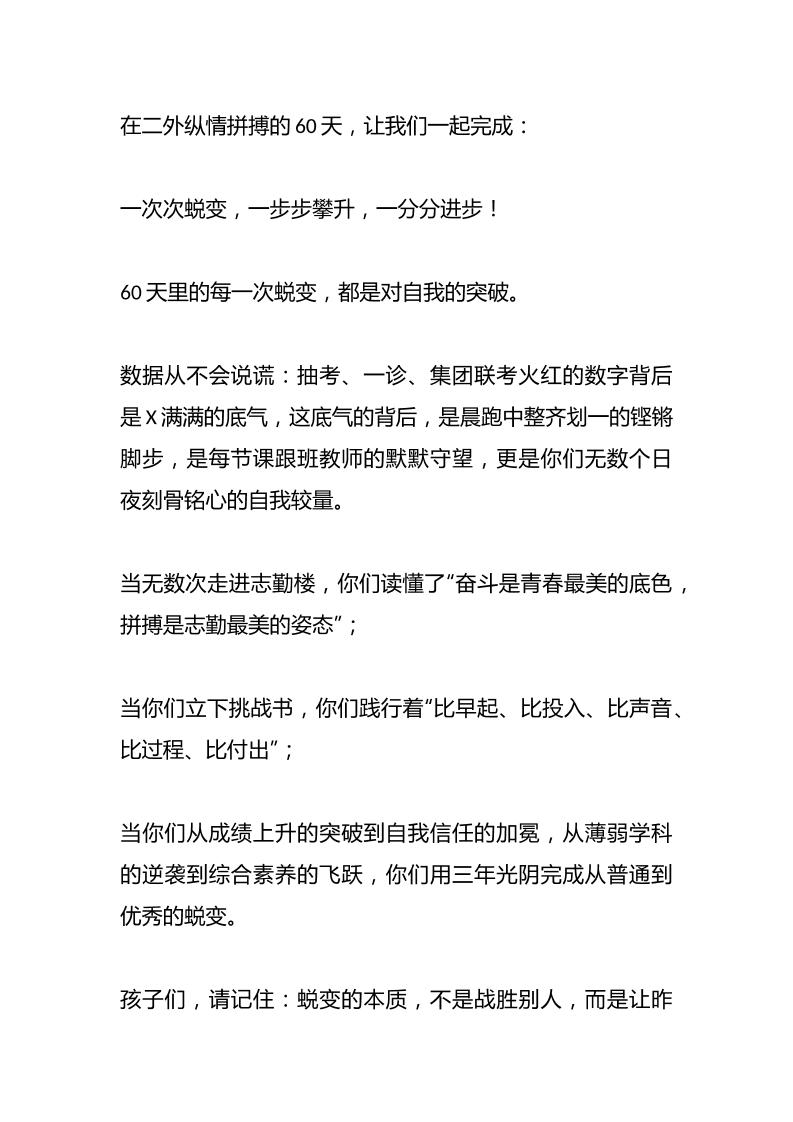 校长在2025届中考60天誓师大会上的致辞子渊9个月前发布关注私信0429 ——预览已结束,还剩4页未读——开通会员后可免费下载高清完整文档 校长在2025届中考60天誓师大会上的致辞此内容为付费资源,请付费后查看¥19.9¥999普通会员免费超级会员免费立即购买您当前未登录!建议登陆后购买,可保存购买订单格式docx页数6 页大小14.07 KB付费资源© 版权声明文章版权归作者所有,未经允许请勿转载。THE END发言稿 喜欢就支持一下吧点赞9 分享QQ空间微博QQ好友海报分享复制链接收藏